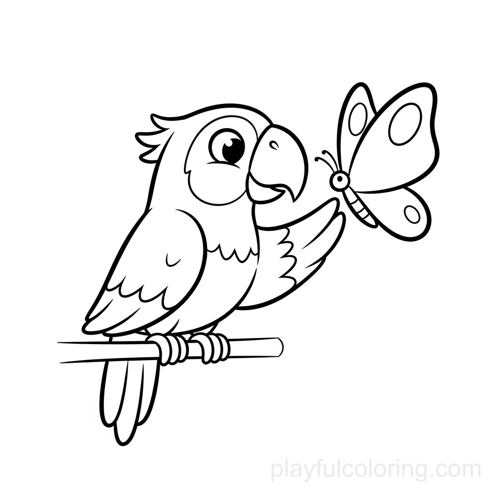 Rencontre d'un perroquet et d'un papillon, scène douce. – Coloring Pages | Playful Coloring