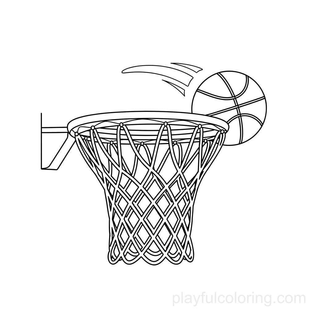 篮球网特写轮廓,球嗖嗖地飞过,居中,线条友好,场面平静。
