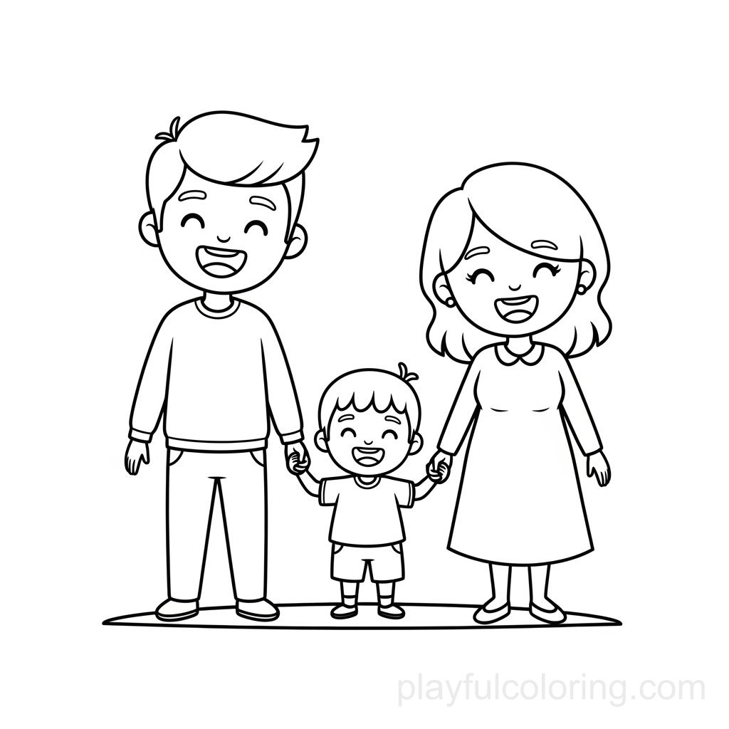 一家三口手牵手,面带微笑,隐约露出地面,居中。