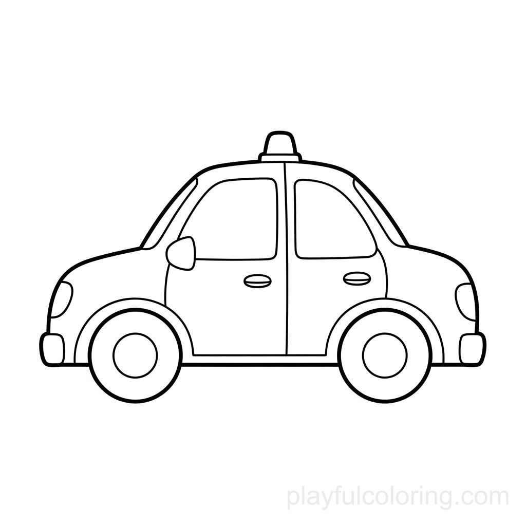 警车侧视图,带有一个小灯条,通用友好的外形,圆形车轮,安全、中立。 – Coloring Pages | Playful Coloring