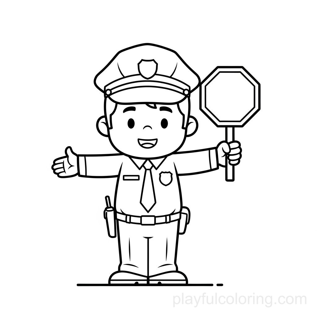 警察手持停车标志图标,引导交通,友好的手势,地面提示,居中。