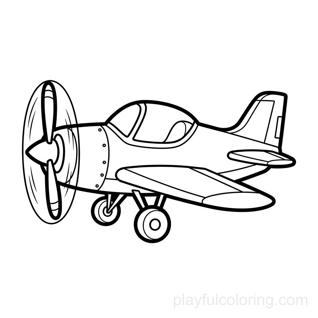 小型螺旋桨飞机侧视图,单螺旋桨轮廓,简单的起落架,友好的外观。 – Coloring Pages | Playful Coloring