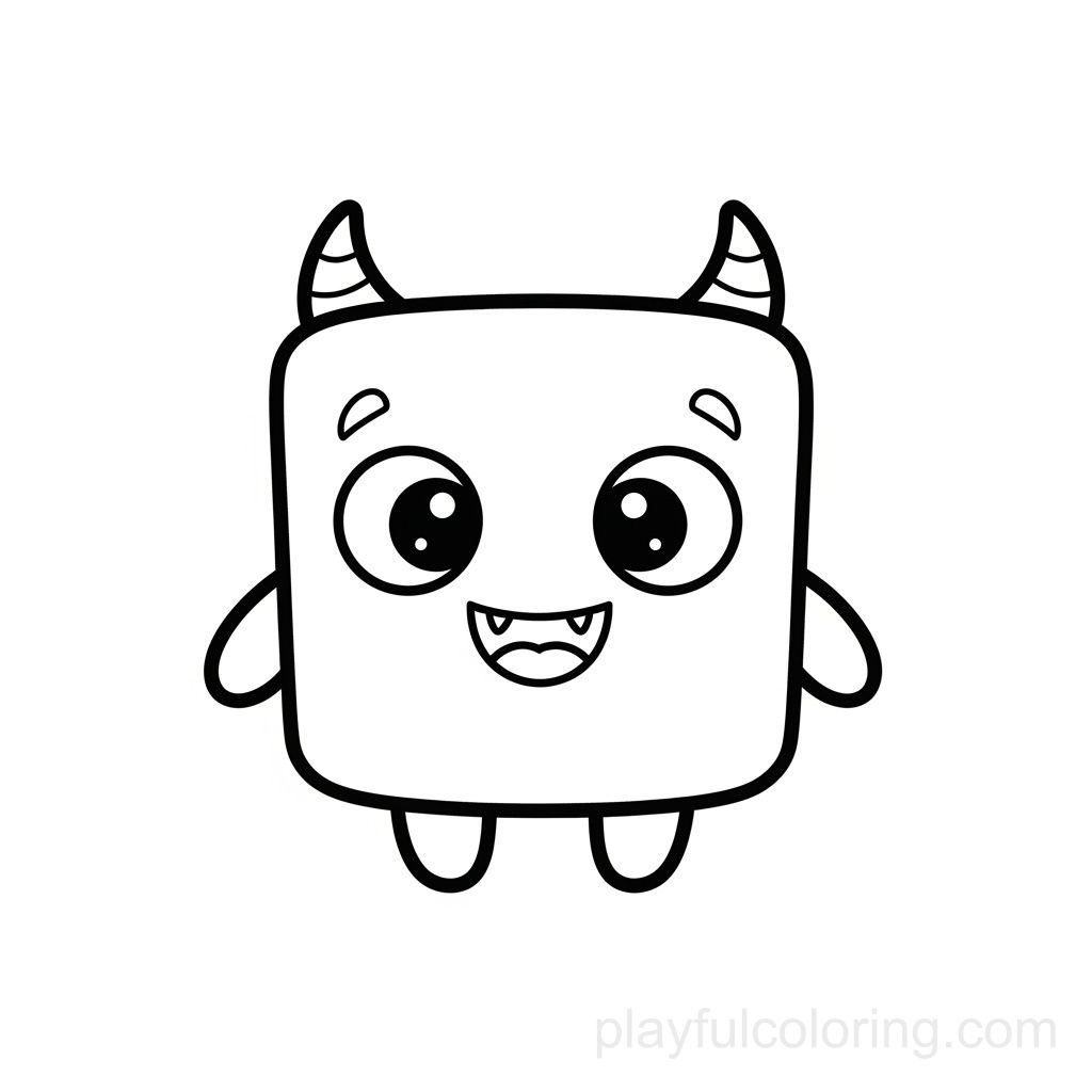 一个长着小腿和角的方形怪物,眼睛炯炯有神,居中而立。