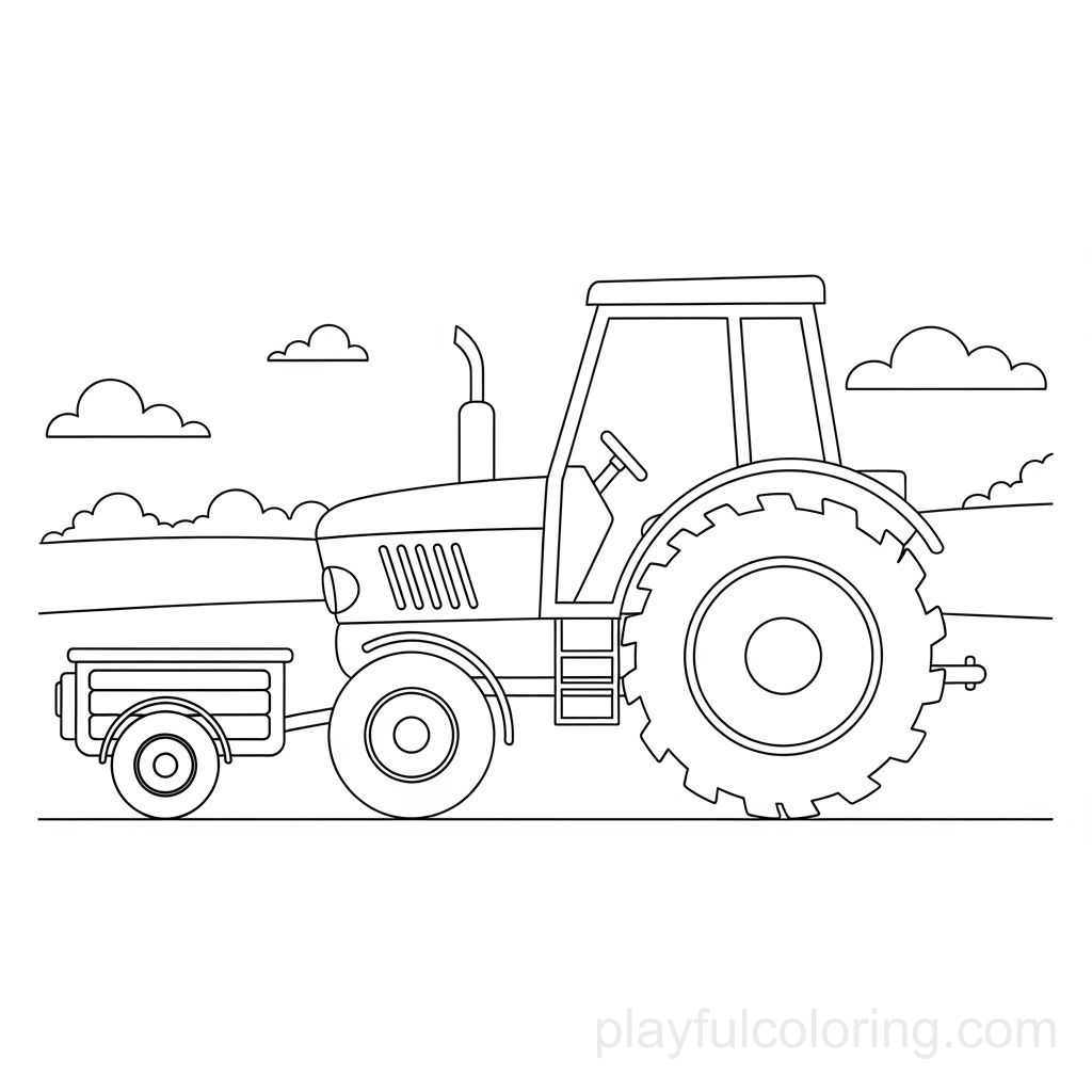 拖拉机侧视图,拖车轮廓,大后轮,圆形车轮,场景平静,轮廓清晰。